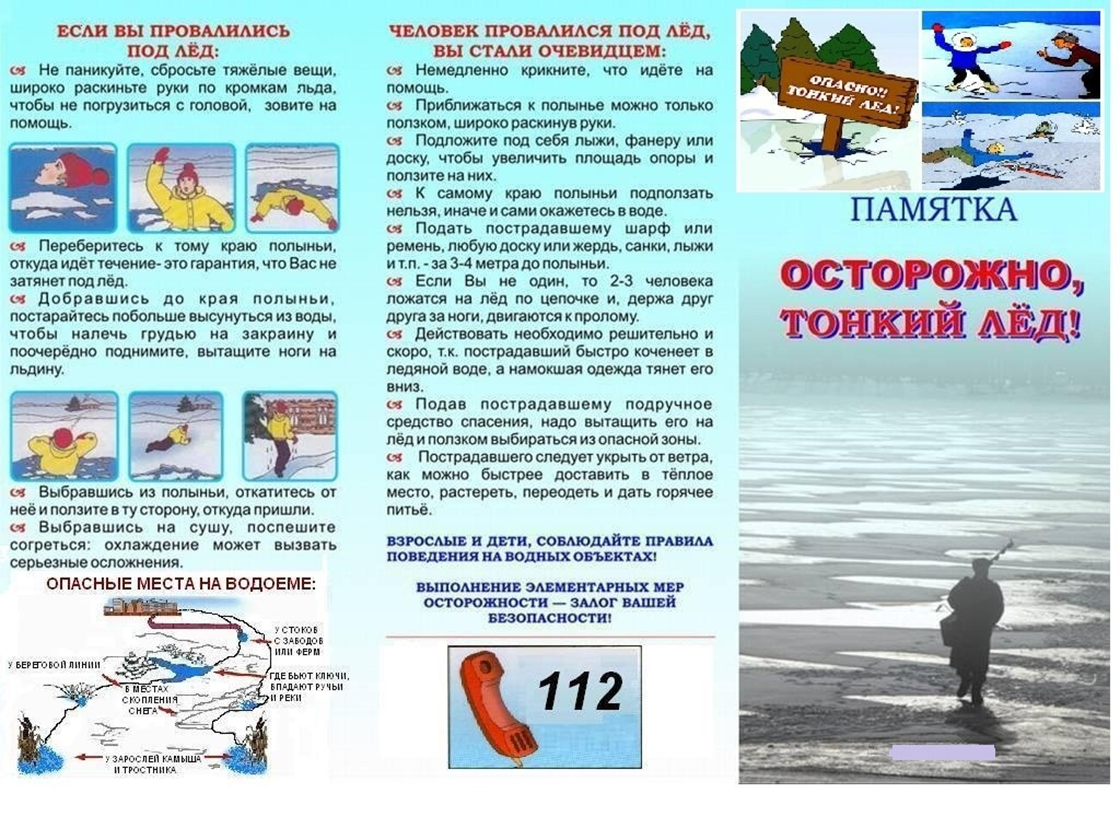 Помните об опасности выхода на лед в период активного таяния (разрушения) льда, а также при его толщине менее 7 сантиметров.